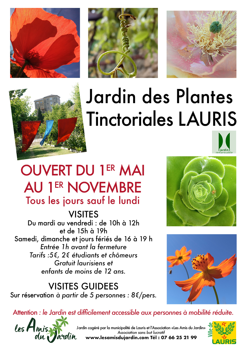 Au coeur du Luberon, à Lauris Installé sur les majestueuses terrasses du château, dominant la vallée de la Durance, le Jardin Conservatoire des Plantes Tinctoriales est un lieu d’exception, à la croisée de la botanique, de l’art et du patrimoine. Labellisé Jardin Remarquable, il est à ce jour le seul jardin en Europe entièrement dédié aux plantes à couleurs.