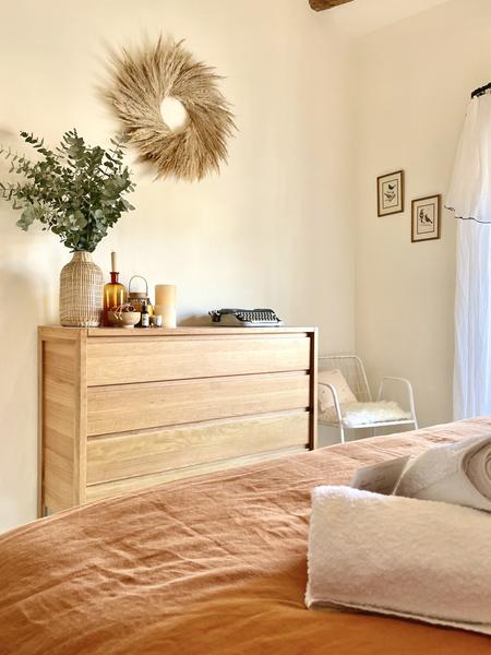 Au premier niveau, vous découvrirez une belle entrée avec placard, ouvrant sur un espace de vie climatisé et baigné de lumière tout au long de la journée. La cuisine ouverte, entièrement équipée (cafetière Nespresso, plaque à induction, four, lave-vaisselle, lave-linge), vous permettra de cuisiner les produits du marché et d'expérimenter l'art de vie provençal. Une chambre confortable avec lit queen size (160 cm) complète ce niveau. À l’étage, la mezzanine accueille une salle de douche avec WC.